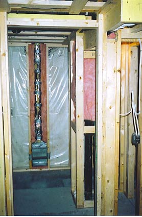 • basement 1• basement 2 • basement 3 • basement 4 The seventies theme of this 1000sq.ft. handyman development must have been "on sale". 3 types of paneling covered 2 others. Then we uncovered the skeleton of a bird fried against the hot air plenum, mould growing from 2 foundation cracks, 2 mouse nests in the little insulation there was, 3 concealed junction boxes with exposed wires, 4 faulty wired pot lights, dryer venting into a dead space, disjointed heat ducts, no return air or bath fan.