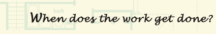 Occasionally, some work might get done on a Saturday or during an evening. The exception being "weather permitting" for exterior work.